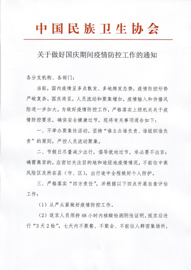 关于做好国庆期间疫情防控工作的通知